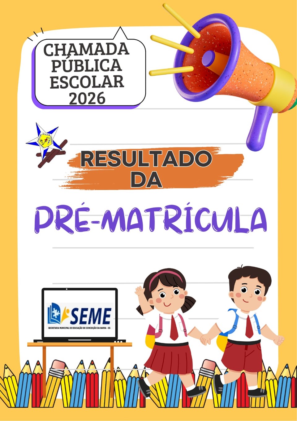 A Secretaria de educação divulga o resultado da Pré Matrícula. O período de Efetivação das Matrículas dos alunos que participaram do Processo de Pré Matrícula será 23/12/2025 a 30/12/2025 na Unidade Escolar.
