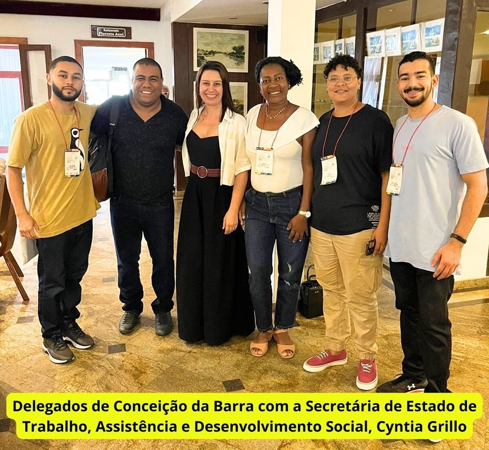 Estiveram representando o município de Conceição da Barra , os servidores Lorenzo da Costa Profeta(Trabalhador do SUAS), Guilherme Profeta Pereira(Trabalhador do SUAS), Maria Aparecida Andrezza(Trabalhadora do SUAS), Camila Rodrigues(Trabalhadora do SUAS) e Fernando Amorim(Usuário).