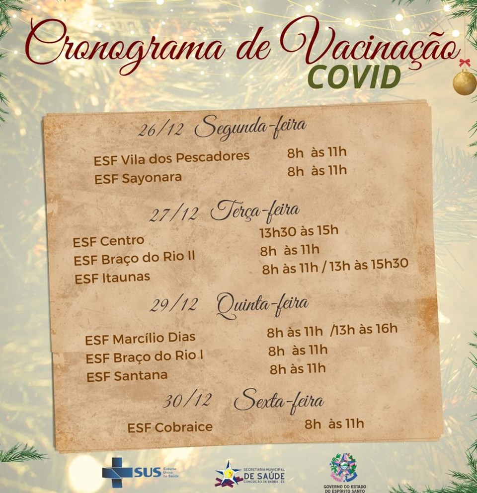 Cronograma de Vacinação Covid-19 - 26 a 30 de dezembro de 2022