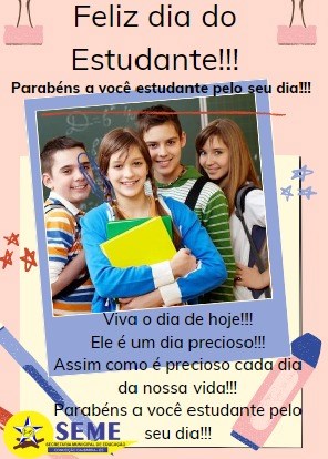 Estudante você pode se considerar uma pessoa batalhadora, pois sua busca de mais conhecimentos é constante. Alguém, que luta para alcançar seus objetivos, sem nunca ter pensado em desistir. É como se essa palavra não existisse no seu vocabulário. Alguém que almeja conquistar o primeiro lugar sem desejar nada o que não fosse sonho a se realizar. Estudante não tem idade, pode ser que tenha seis ou que tenha sessenta anos, o importante é que cada pessoa, um dia já foi ou vai ser um verdadeiro e eterno estudante.