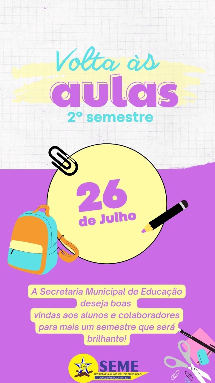 VOLTA ÀS AULAS - 2º SEMESTRE!!!